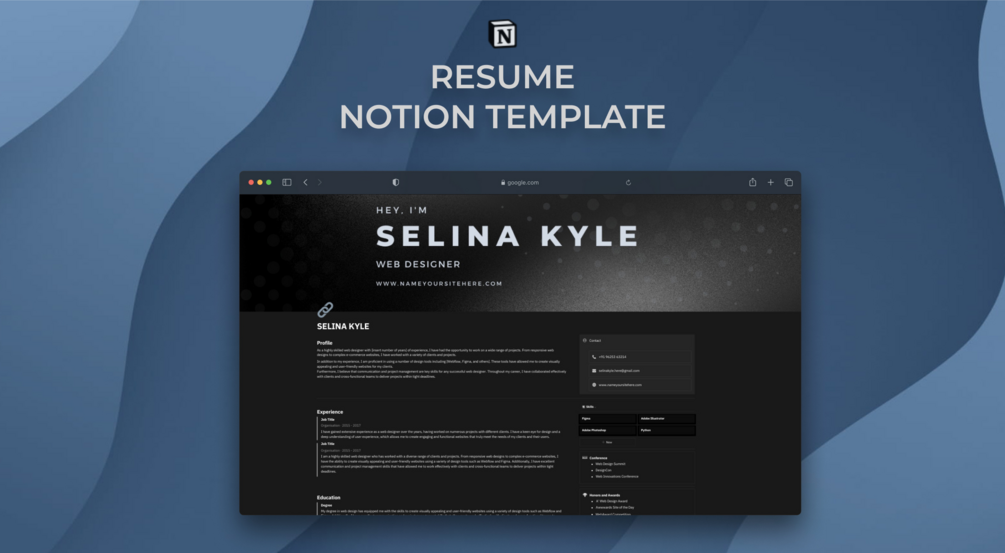The Notion Resume Template features: